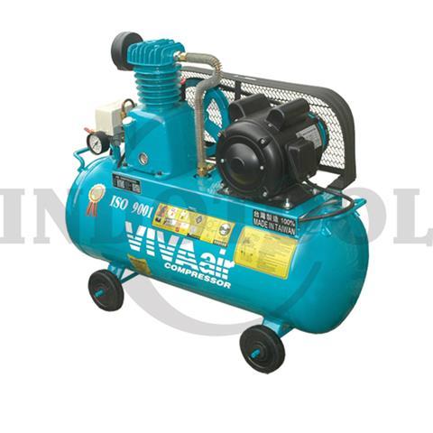 Power : 0.37kW, Volt/Ph : 220V/1PHS, Speed : 660rpm, Cyl No : 2, Max Pressure : 10kg/145PSi. Tank Cap : 58L, Size : 100x33x68cm, Berat : 54kgs/119lbs.